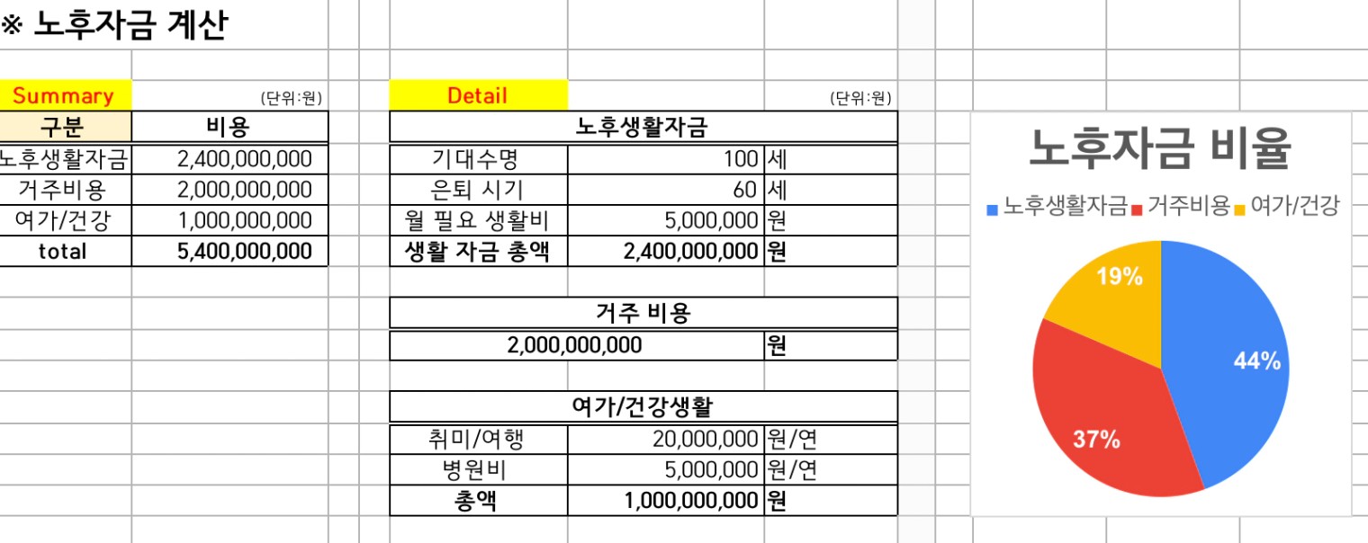 - 500만원 X 12개월 X 40년(은퇴 이후 여생)