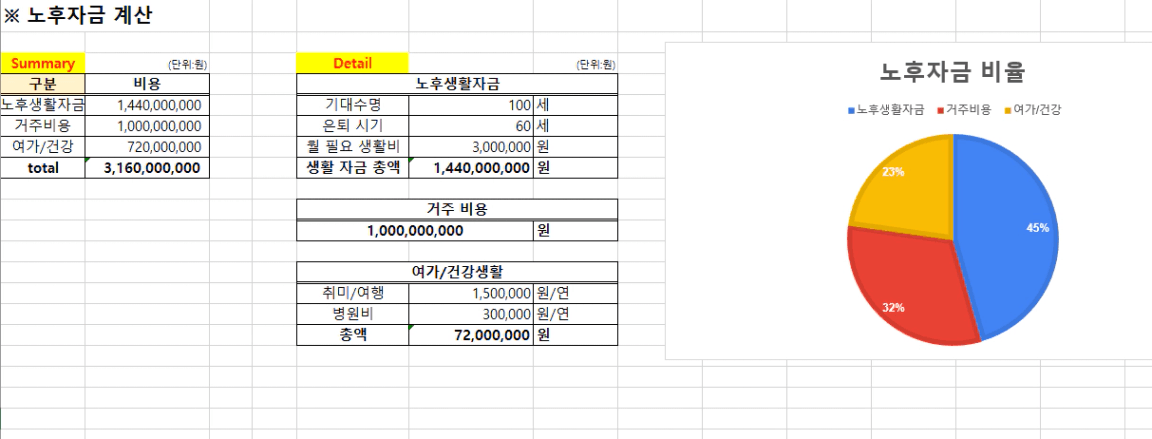 노후 자금, 목표 금액 계산을 위한 은퇴시간 계산기,