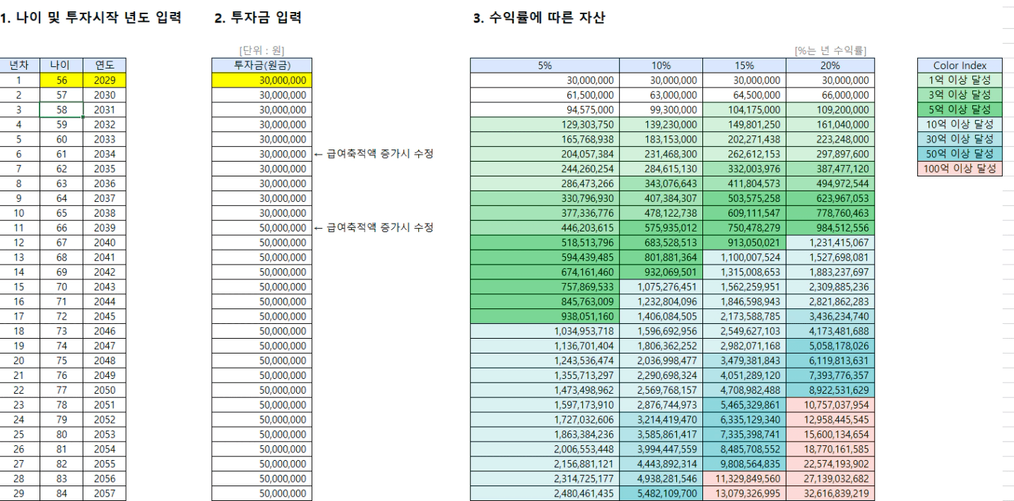 STEP4. 수익률에 따른 은퇴 가능 나이