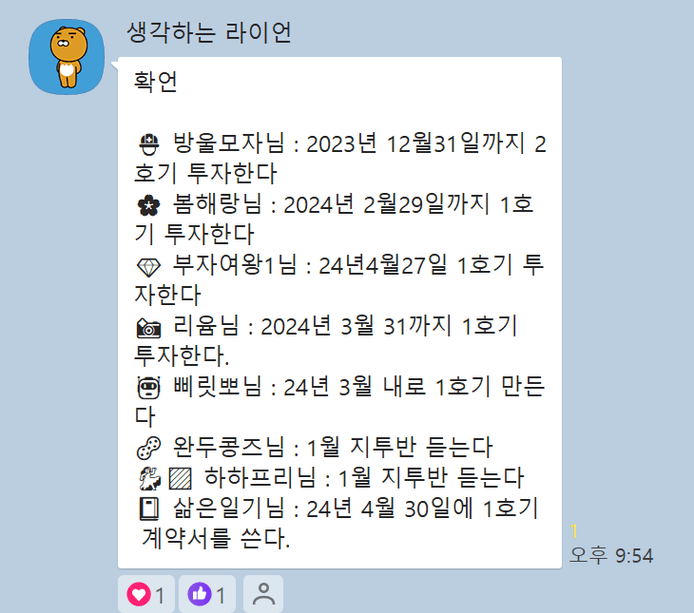 그리고 그날 밤에 서로의 확언을 모아 각자 100번쓰기에 올려주셨습니다.