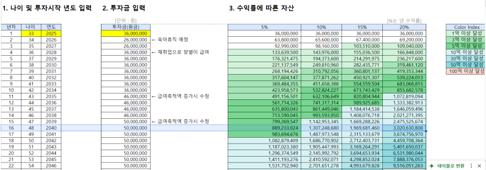 STEP4. 수익률에 따른 은퇴 가능 나이