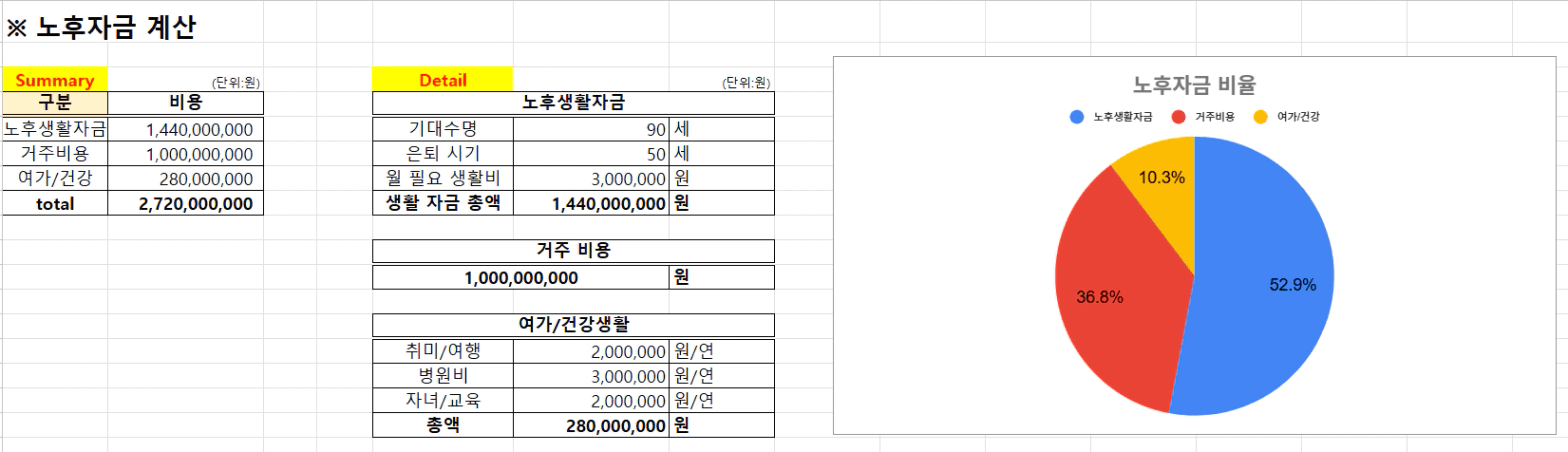 필요한 노후 자금 합계 ▶ 총 27억 2천 만원