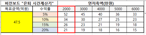 | 목표금액 47억 5천만원 (현재 나이 52세, 연저축액 2000만원) |