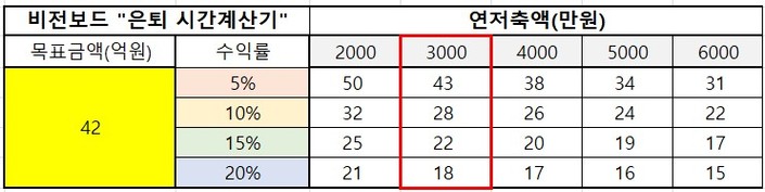 목표 금액 42억 (현재 나이 31세, 연저축액 3000만원)