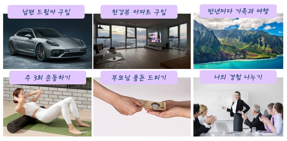 - 인간관계: 주 1회 친구에게 안부묻기, 월 1회 가족과 외식하기