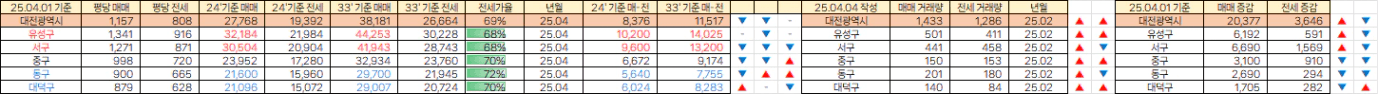 대전도 매매, 전세 물량이