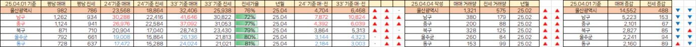 울산은 지난 달과 달리 거의 모든 지역의