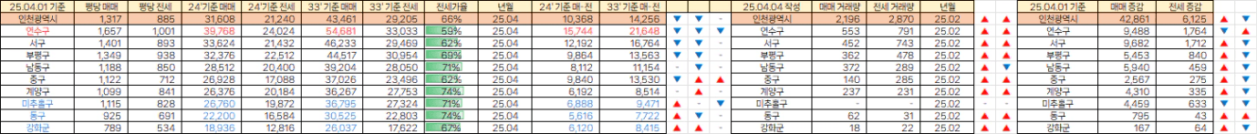 인천 매매 물량은 대부분 증가했고