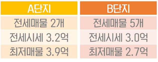 물론 단지내 전세매물 개수가 작으면