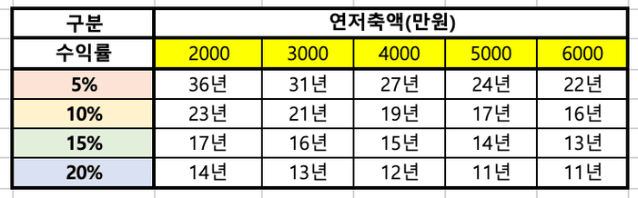 STEP 4. 수익률에 따른 은퇴 가능 나이