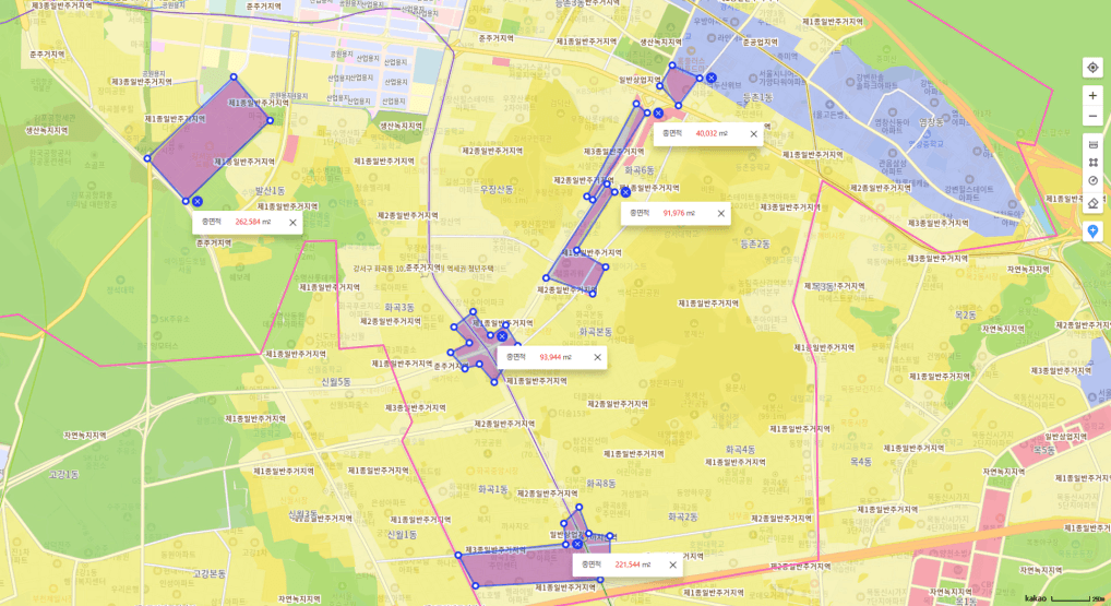주거지역 : 1종~3종 + 준주거 지역으로 주택, 오피스텔, 아파트들이 집중된 지역