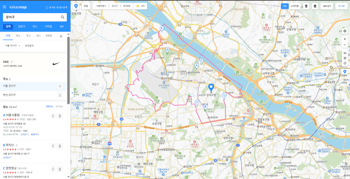 1. 카카오맵 어플을 키고 지역을 분위기 임장가는 위치를 검색합니다