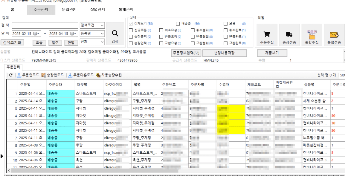 챌린지를 하면서 처음으로 대량주문도 받아봤습니다~!