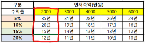 -수익률 20% : 50세 (2035년)