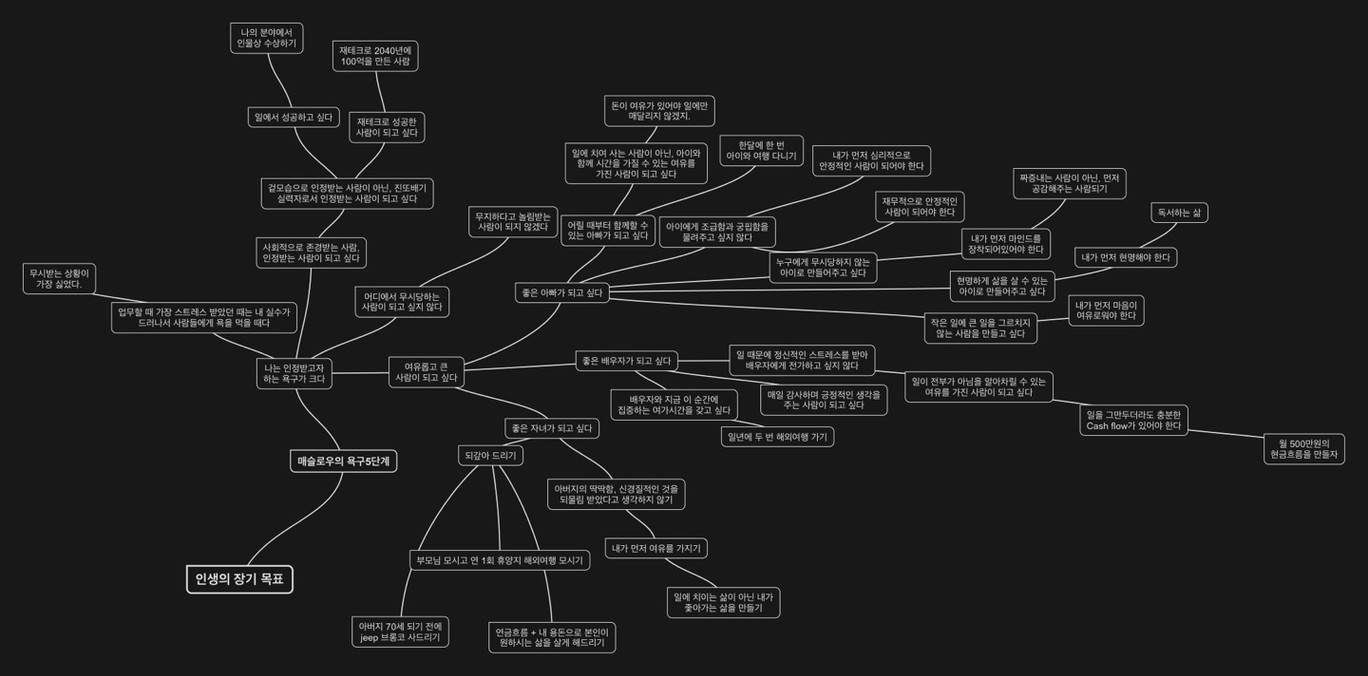 안녕하세요. 용그릿입니다. 비전보드를 작성하기 전에 제가 생각해왔던 저의 매슬로우 욕구 5단계 중의 가장 큰 욕구를 기초로 비전을 만들어보았습니다.