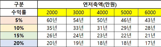 수익률 5% -> 2066년(69세)