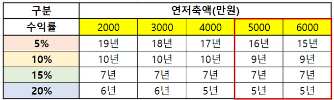 목표금액 50억 (현재나이 만46세, 연저축액 5~6000만원)
