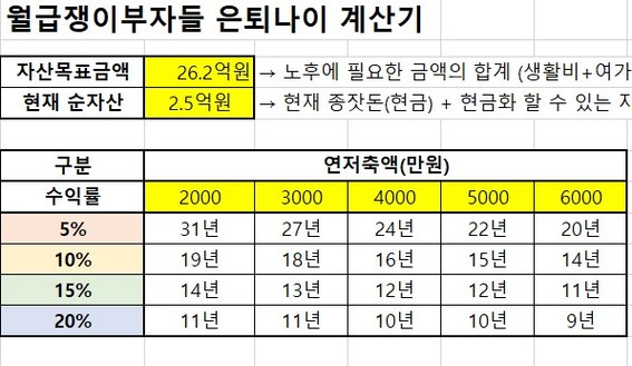 목표금액 : 26.2억(현재 나이 56세, 연 저축액 2,000만원)