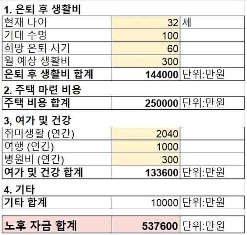 노후 자금과 은퇴 자금 계산기에 숫자를 넣어보니 열심히 저축하고 은퇴시기는 늦춰야겠다는 생각이 듭니다.