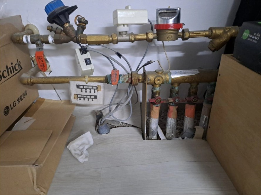 확인 결과, 보일러 배관의 메인 밸브와 볼밸브를 바꾸면 된다고 하셨다.
