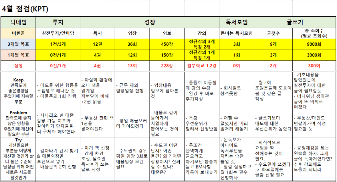 이번 달 복기와 5월 계획을