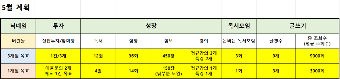 이번 한 달의 목표는 이럤습니다.