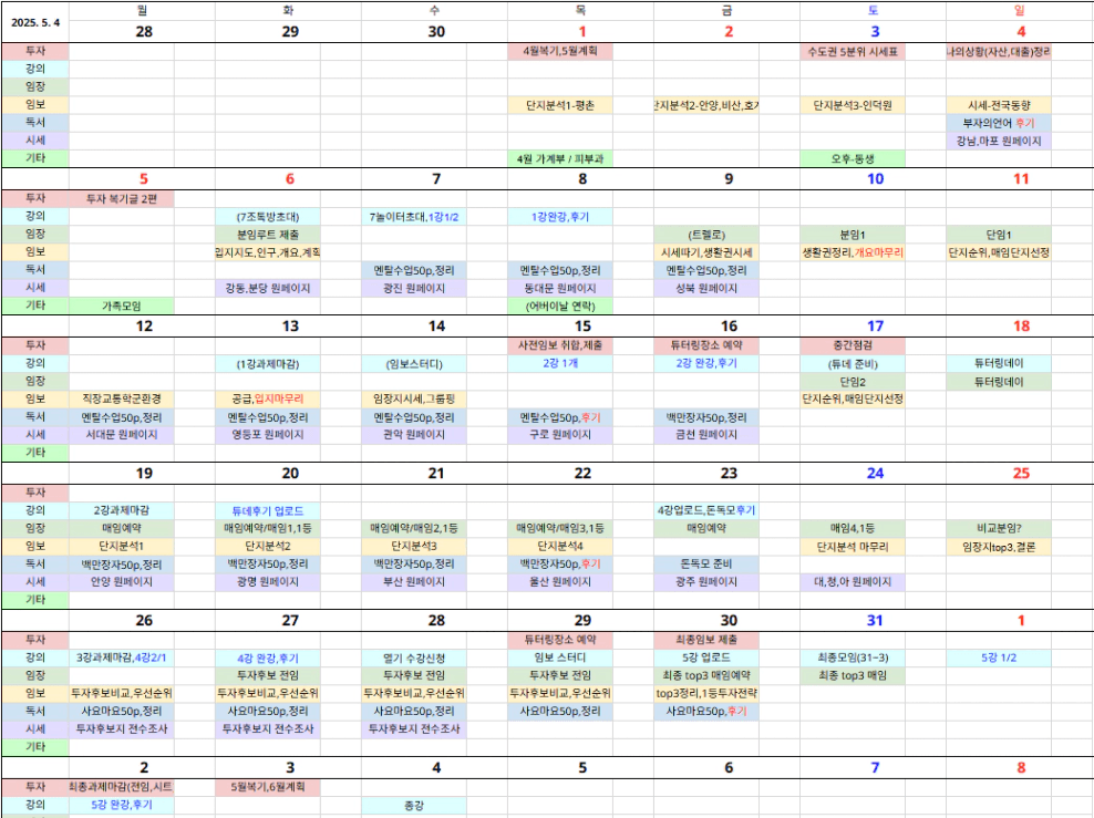 지난달 대비 임장은 줄었지만 독서/임보는 줄이지 않았고, 새로운 앞마당도 만들고 기존 앞마당도 나름 열심히 들여다 본 한달이었습니다.