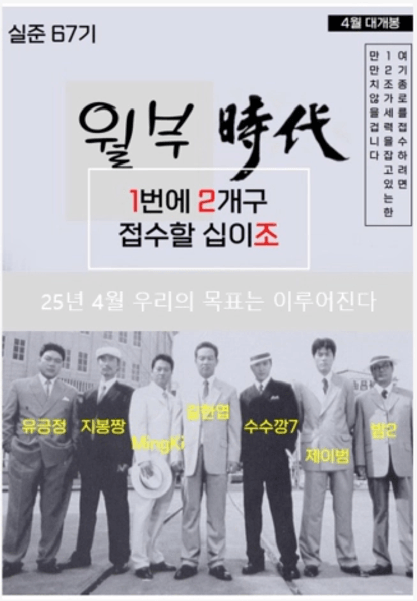 “1번에 2개구 접수할 십이조”라는 타이틀과, “25년 4월 우리의 목표는 이루어진다”는 대문과 늠름한 대표 사진을 내걸고 한 달 간의 여정을 시작했습니다.