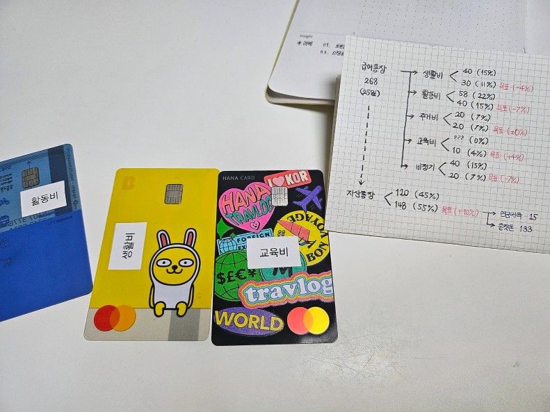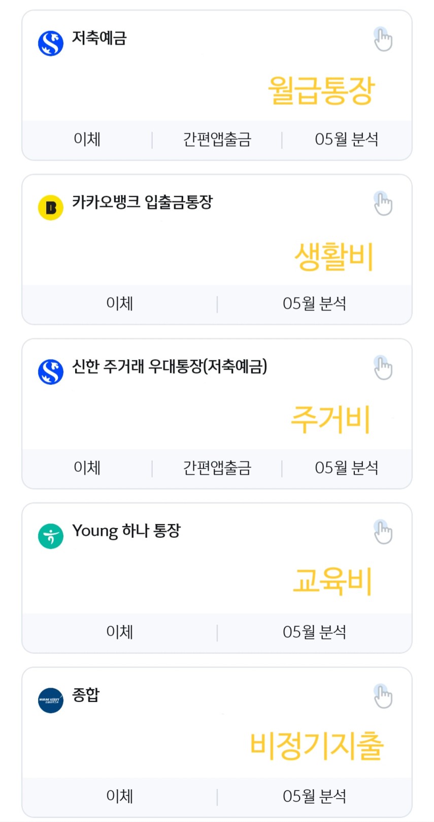 비정기 지출용 체크카드는 아직 도착을 안해서 최대한 기존 사용하는 카드와 통장들로 구성했습니다