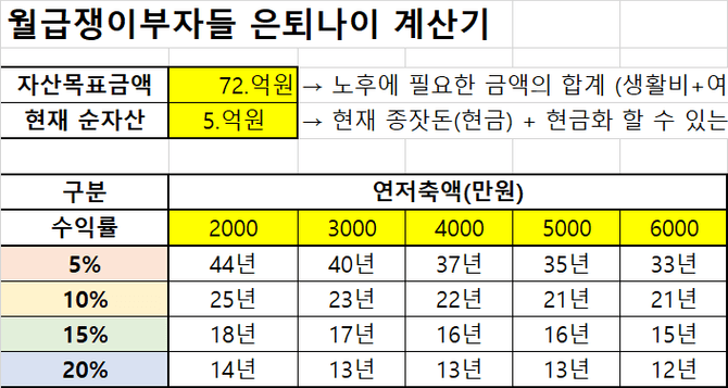 | 월급쟁이부자들 은퇴나이 계산기 | |||||
