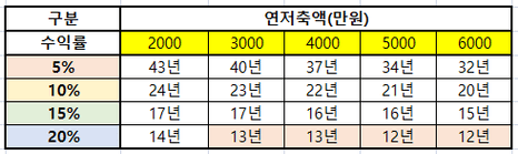 - 수익률 20% : 48세 (2036년)