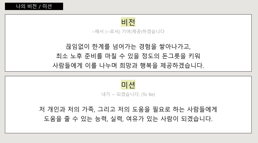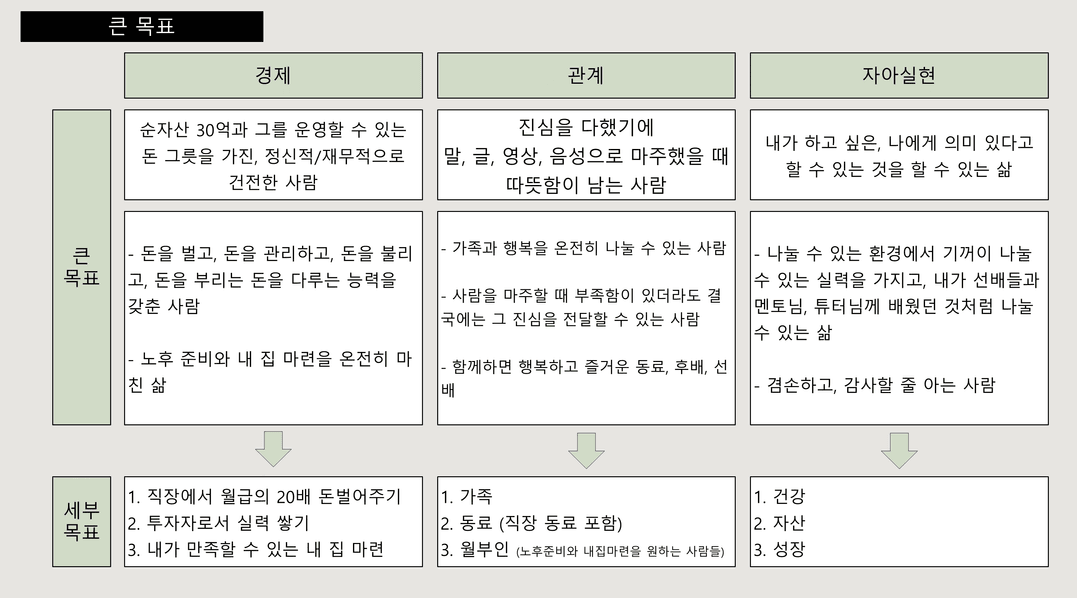 목표는 크게 가져보려고 노력했고, 미래의 저와 연결시키는 것이 중요할 거 같아요.