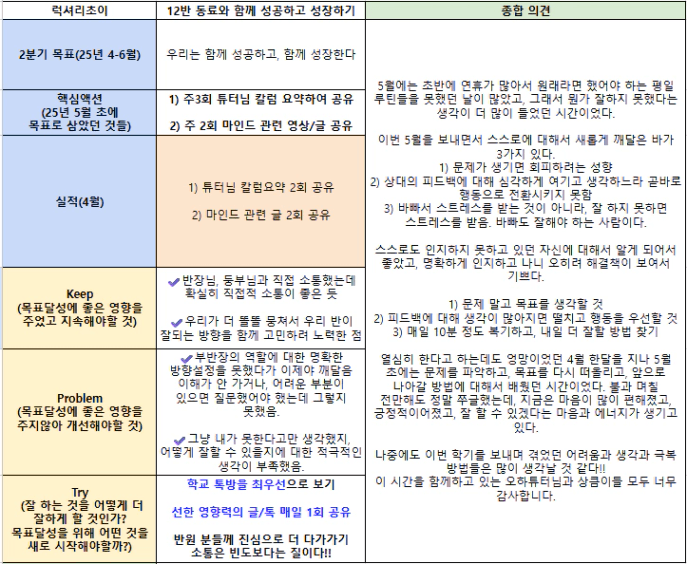 그리고, 운영진끼리 소통도 더 잘 하고, 고민되는 부분 있으면 튜터님께도 더 뾰족하게 질문드리기