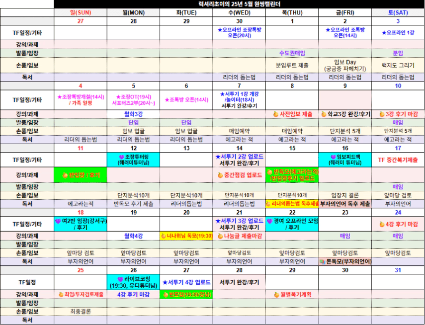 초부님 5월달 마무리 우리 같이 잘 해보아요!!! ㅎㅎㅎ아자아자!!!