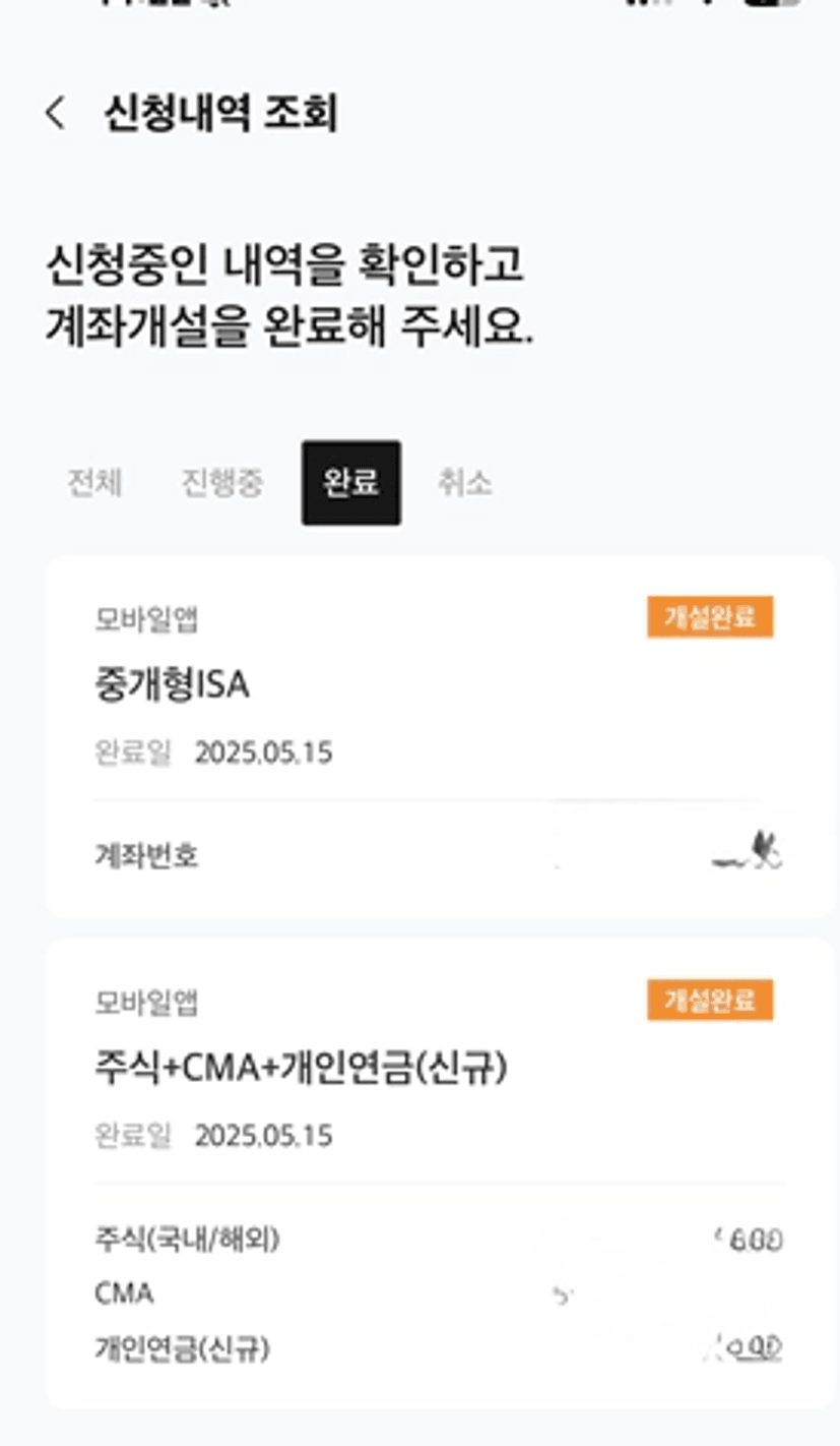 중개형 ISA 까지 모든 개설 완료했습니다.