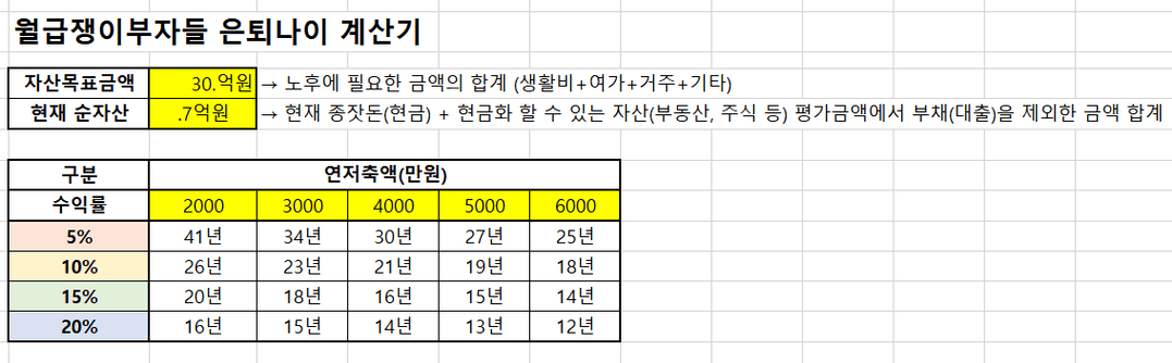 노후 자금 계산&수익률에 따른 은퇴 가능 나이
