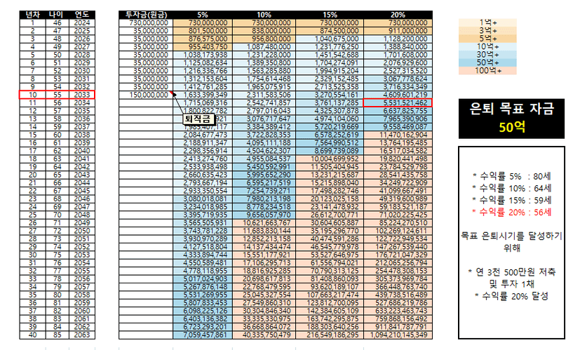 STEP 4. 수익률에 따른 은퇴 가능나이