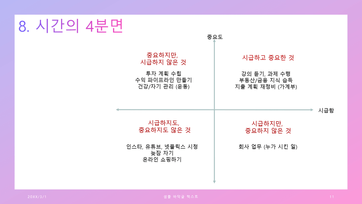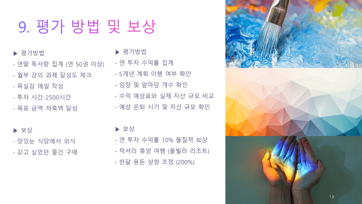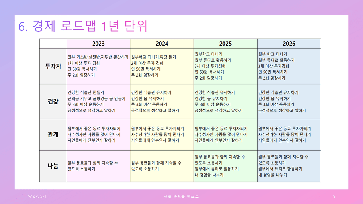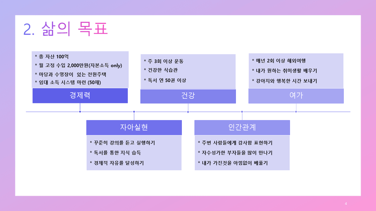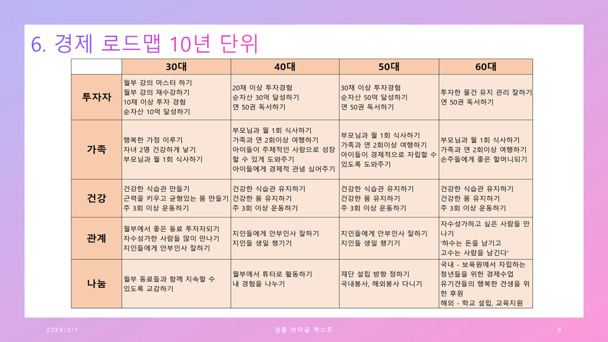 조장님, 한페이지 한페이지 정말 열심히 잘 만드신것 같아요. 내용도 좋고 체계적이라서 저도 조장님 하신 것 보고 다시 수정해서 작성해보고 싶어요. 조장님께 많이 배울 수 있어서 감사합니다. :) 오래오래 함께하는 동료이고 싶어요. 그리고 보육원에 있는 청년을 위한 경제수업이 인상깊어요. 제가 여기서 공부하기 시작하면서, 저는 사회복지업무를 하고 있었는데. 나라가 당장 위기에 있는 사람들에게 왜 이를 벗어나고 이렇게 살지 않을 수 있는 방법을 교육하지는 않고, 시급하게 수당만 줘버리고 말까. 그냥 이러한 과정도 국가적 손실 아닌가? 언제까지 수급자를 양성하려고..? 하는 생각이 들었었어요. 그래서 위기에 있는 사람들에게 교육을 하고싶다는 생각? 그리고 근무를 할 당시에는 이 분들 운동이라도 시키면 좋지 않을까 그런 생각을 했었는데. 일단은 저부터 잘 되어야 하니까.... 그래도 마음 한편에 지금의 방법은 부족한 점이 있다는 생각은 있네요. 조장님께서 사회에 꼭 좋은 일을 하실 수 있을 것 같아요.