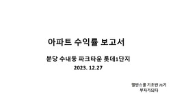 분당구 수내동 파크타운롯데아파트 수익률 분석 보고서[열반스쿨 기초반 71기 부자가되다]