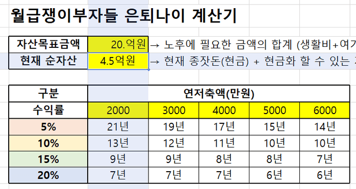 IV 수익률에 따른 은퇴 가능 나이