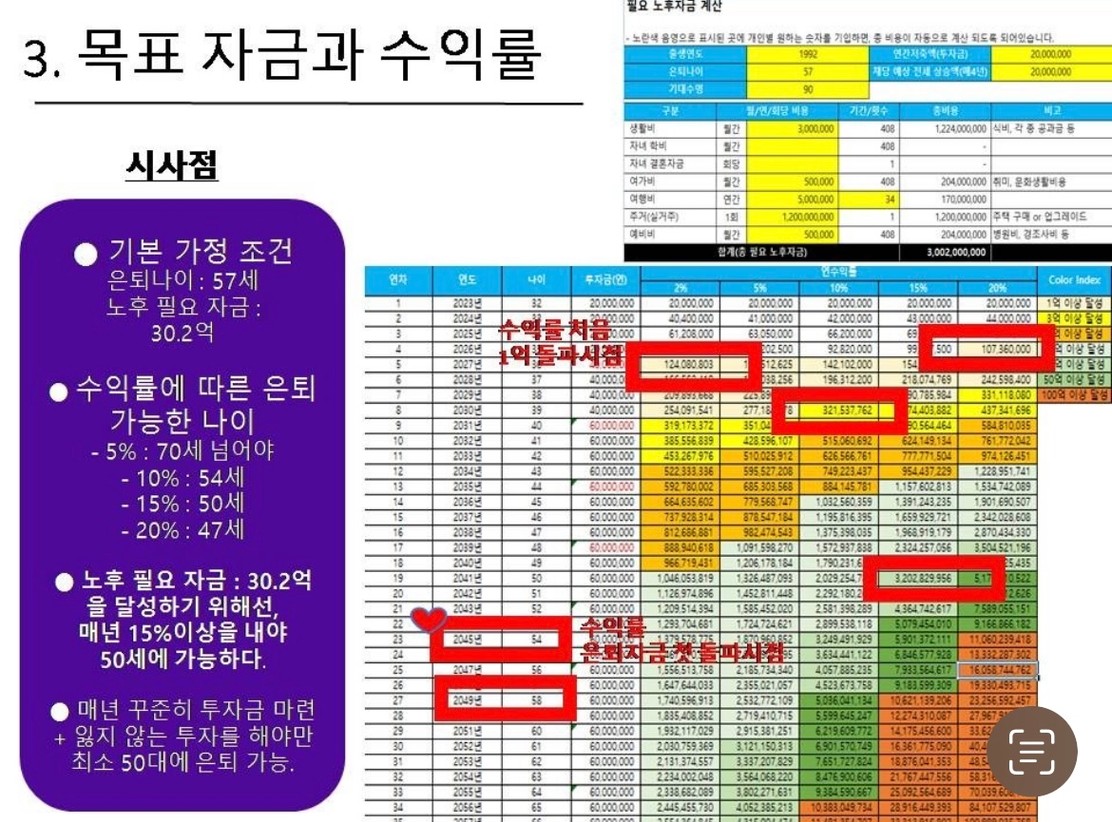 그리고 노후자금 계산과 목표자금을 달성하기 위한 투자 수익률도