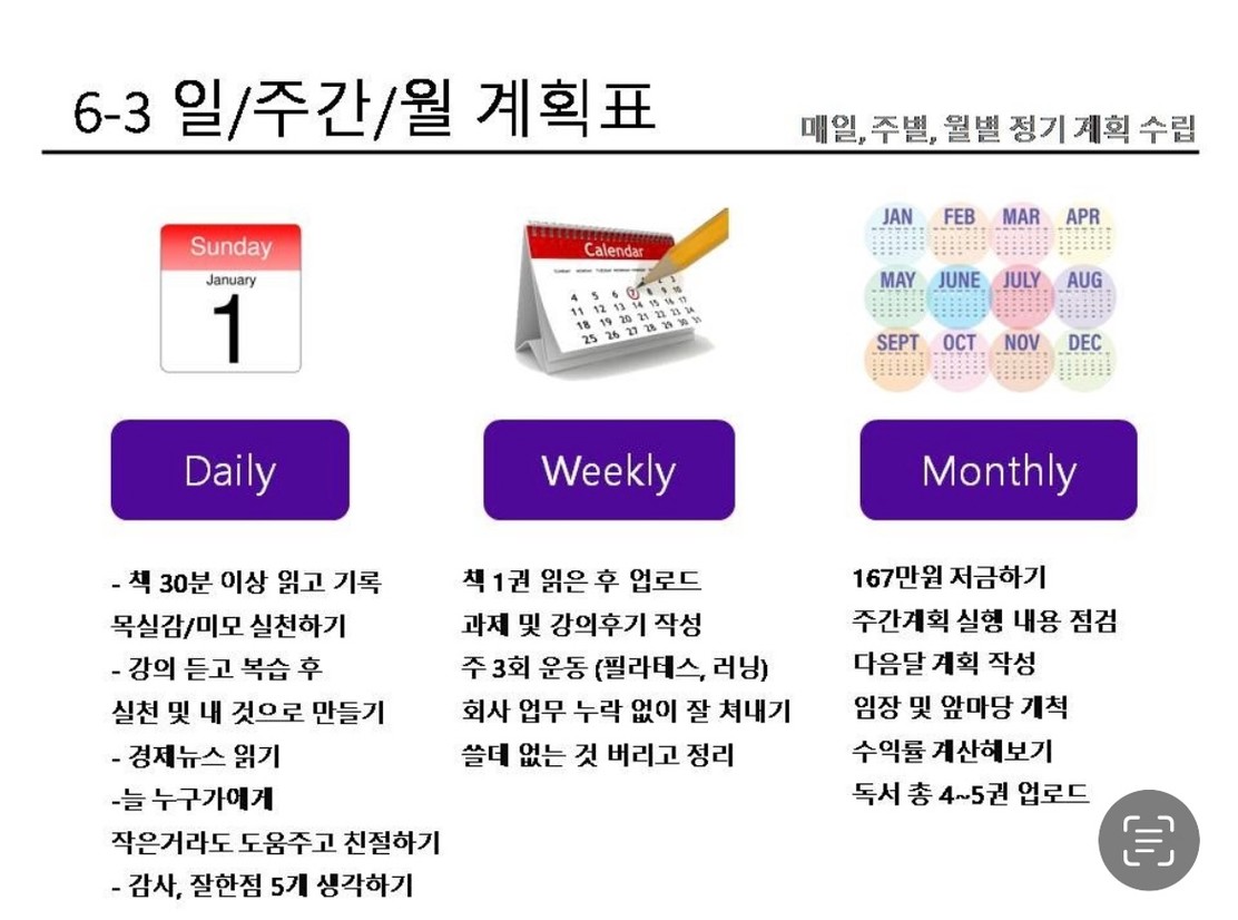 년 / 월 / 주 / 일을 목표로 한다면