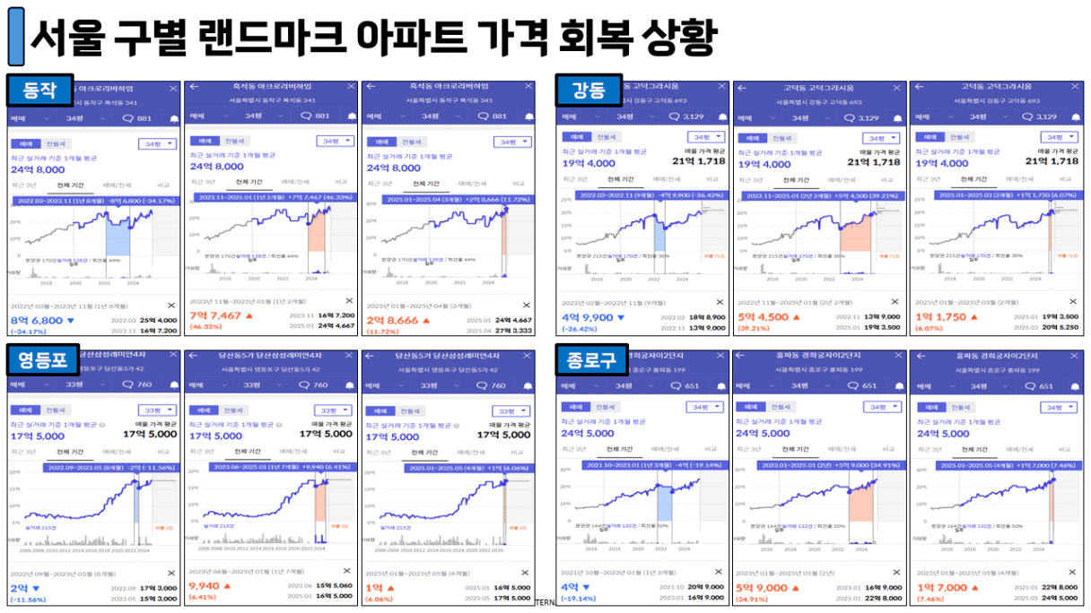 동대문구, 성북구, 관악구의 단지는 여전히 전고점까지