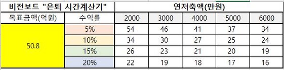 목표 금액 50.8억 (현재 나이 36세, 연저축액 4000만원)