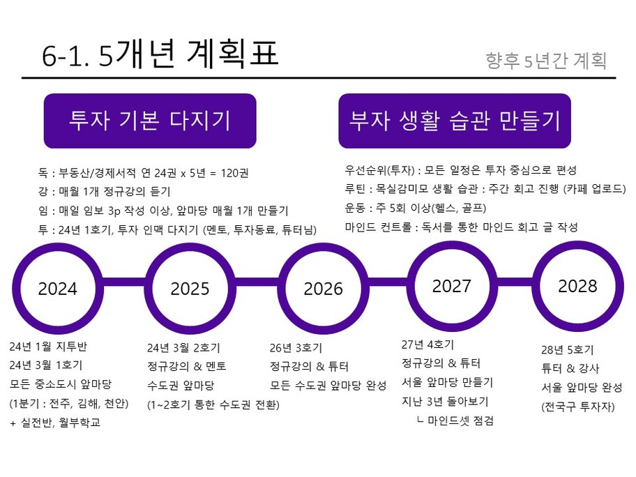 목실감, 시금부, 독서, 강의, 임장, 투자 이 모든 것들이 점이 되어 선이 되는 순간 저의 비전은 이뤄질 수 있다고 확신합니다:)