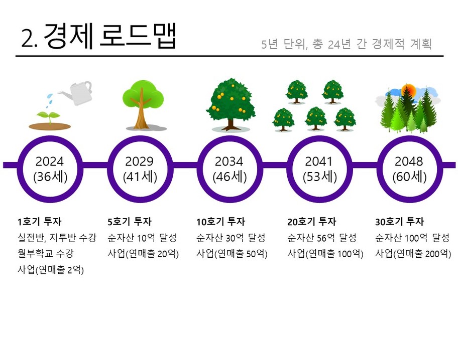 2024년 3월, 1호기를 투자하겠다는 제법 과감하고 구체적인 계획도 있고, 50살에 50억을 달성하겠다는 막연한 목표도 있습니다. 하지만, 이 막연한 목표를 위해서 하루, 한달, 일년 쌓아가다 보면 결국 이뤄낼 수 있다고 저는 확신하게 되었습니다.