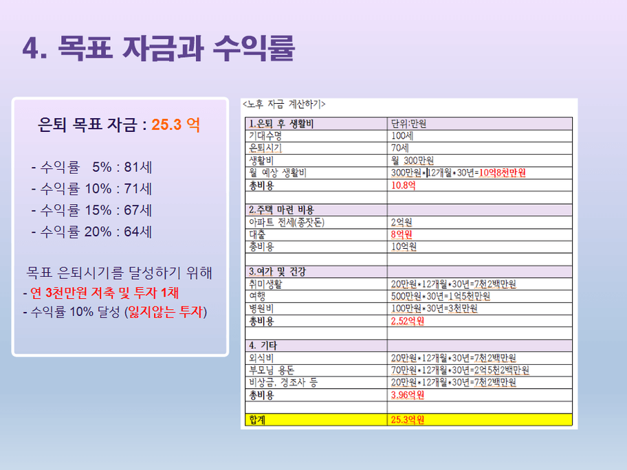 과제를 하면서 앞으로 은퇴하기 까지 남은 시간에 종잣돈을 모으고 어떻게 투자를 해야 하는지와