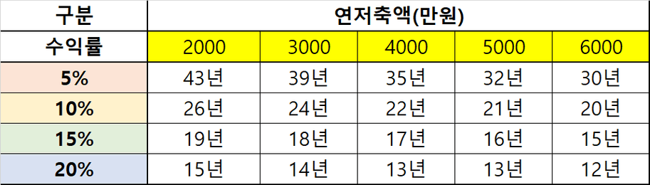 | 목표금액 50억 (은퇴시기 55세, 연 저축액 3000만원) |