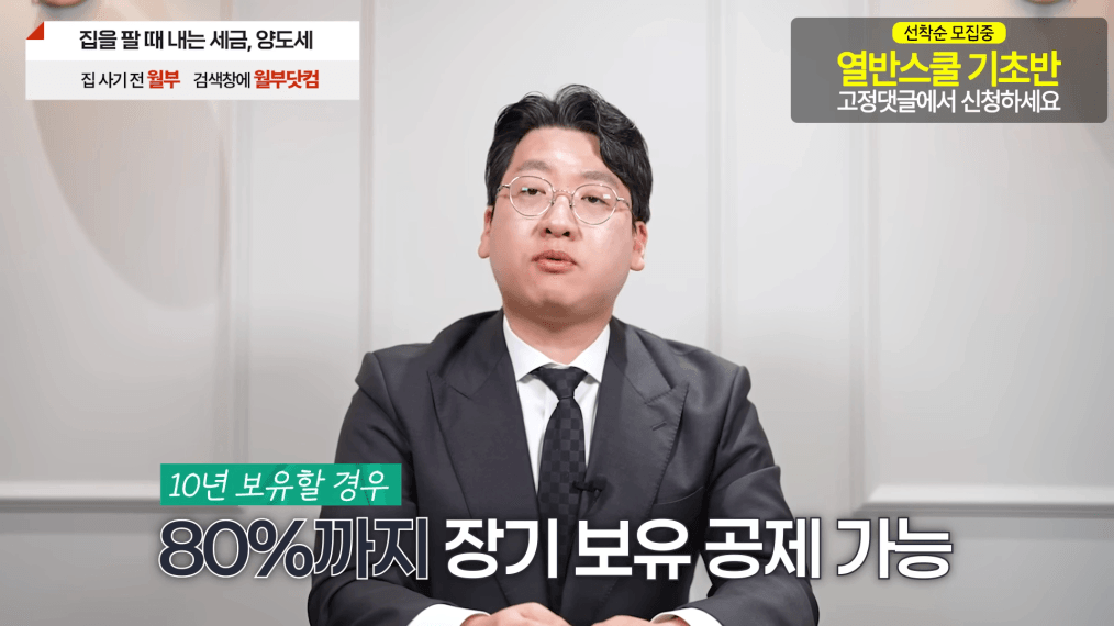 10년 보유하면 80%까지 장기 보유 공제가 가능합니다.