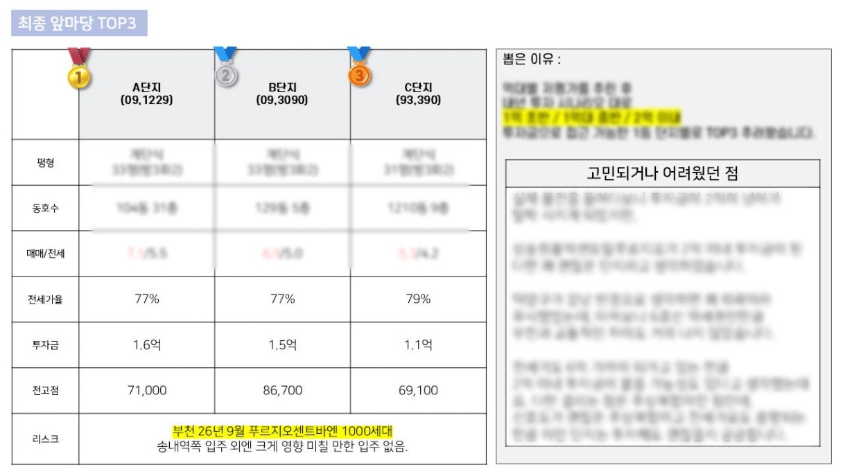내 투자금에 맞는 단지들을 더 디테일하게 비교합니다.
